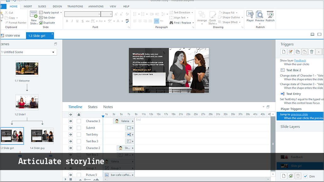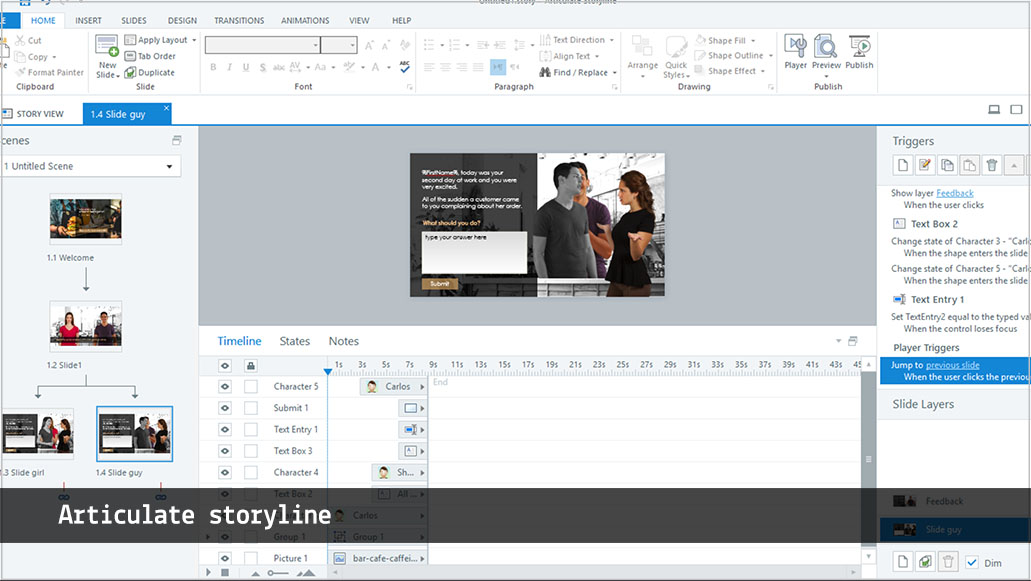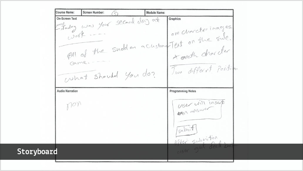 I have been developing eLearning courses for the last four years, but due to my agreement, I never was able to use any of the product in my portfolio. As a result, I thought this would be a very great opportunity to create a scenario-based example to add to my portfolio. This employee-customer scenario was developed as part of an imaginary restaurant training series. In this part, the trainee is placed in a situation where he/she has to deal with a difficult customer.