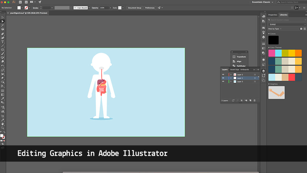The aim of this project to redesign an already exciting visual explanation for the digestive system for children. My goal in this design is to eliminate the extraneous load that been created in the current design. I will be focusing on highlighting the coherence principle by introducing the digestive system organs with the main function of each one. The objective is to introduce the digestive system, not the digestion prosses as this would be a different learning goal. Also, I think it is very important to show the real shape of the digestive system to children instead of a representative image to establish a connection for a future learning objective that related to the same topic.